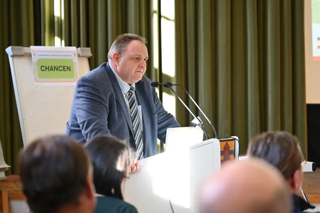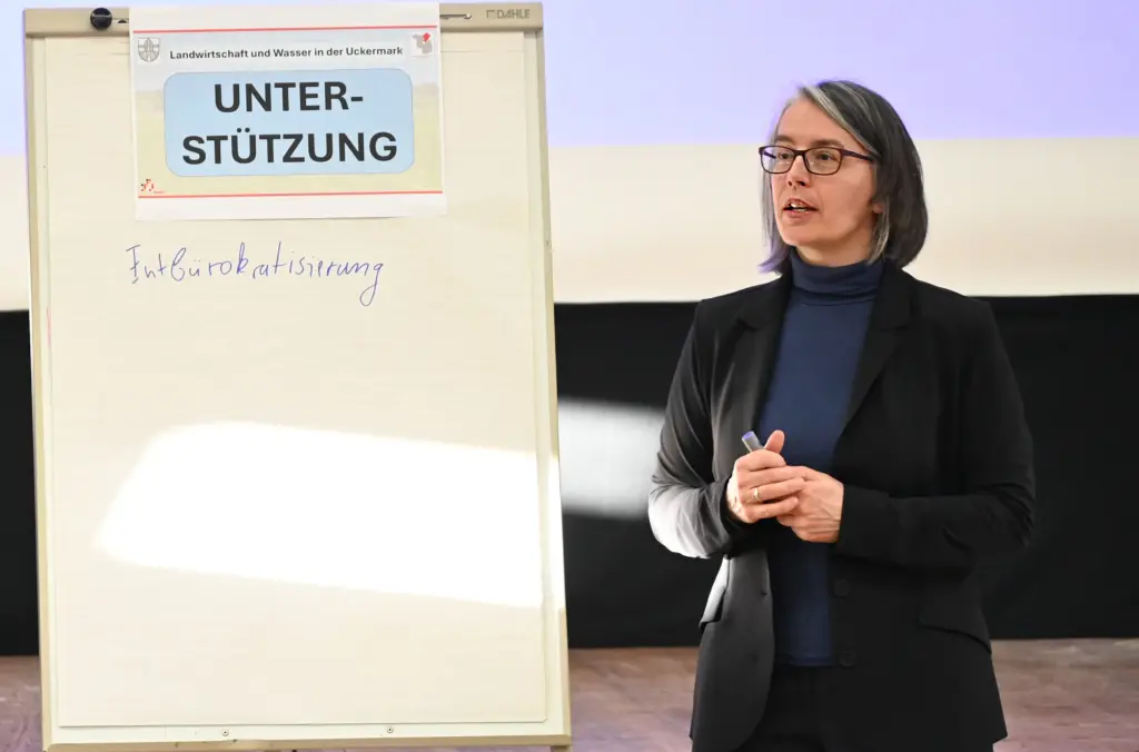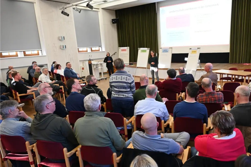 Am 03. März 2026 luden der Landkreis Uckermark und die Regionale Planungsgemeinschaft Uckermark-Barnim gemeinsam zum „Wassergipfel Landwirtschaft“ in den Plenarsaal nach Prenzlau ein. Rund 50 Landwirtinnen und Landwirte sowie die Wasser- und Bodenverbände der Uckermark folgten der Einladung, sich in einem gemeinsamen Austausch den Herausforderungen im Zusammenhang von Landwirtschaft und Wasser zu nähern.